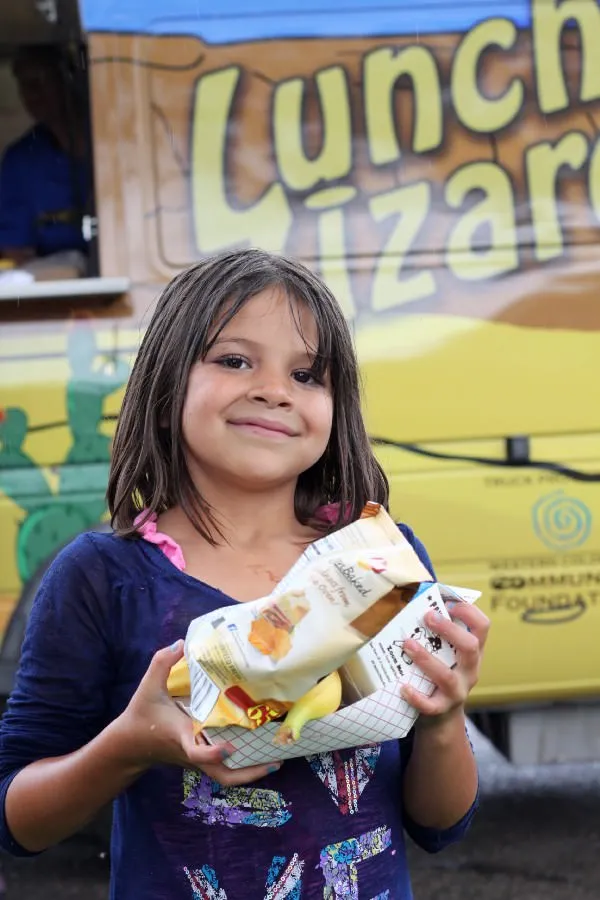 But food trucks don’t matter if kids and families don’t know about them. Grant funding from No Kid Hungry helped Western Colorado Community Foundation produce marketing materials so they could get the word out about the Lunch Lizard trucks. Before school ended, the Lunch Lizard trucks went to end-of-year celebrations at local elementary schools. This also helped increase families’ familiarity with the truck. Parents and children were able to see the food truck up close.
